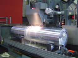 Beim sog. Spitzenlos- oder auch „Centerless-„Schleifen wird das rotations-symmetrische Werkstück (z.B. Wellen, Kolben, Lagerringe etc.) zum Bearbeiten